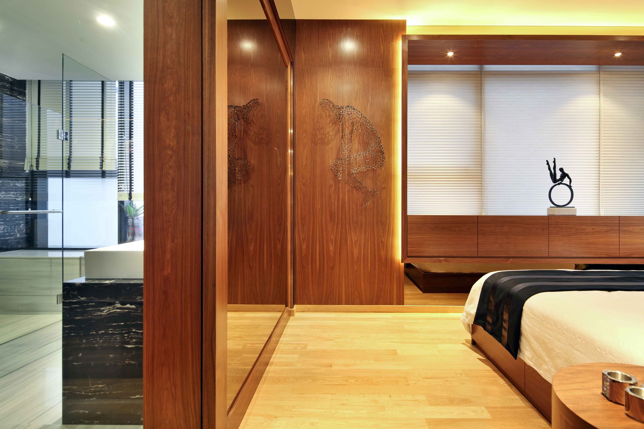 With minimal instruction from the client, DDA began transforming a regular 3-bedroom apartment into a cozy retreat. The design focus was on maximizing the key asset of the property, which is the panoramic view of the Singapore skyline, while also creating a sense of luxury and spaciousness.