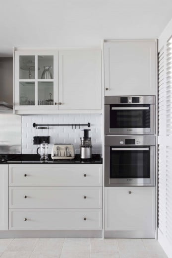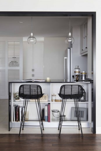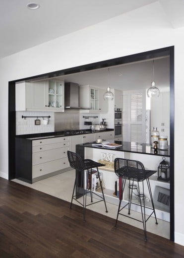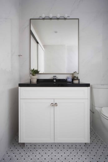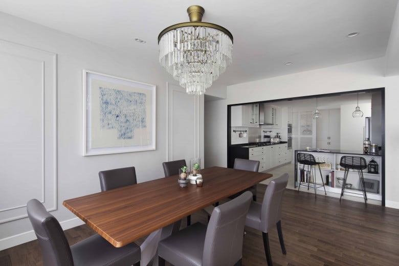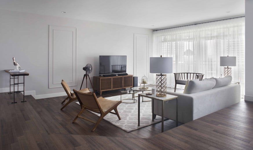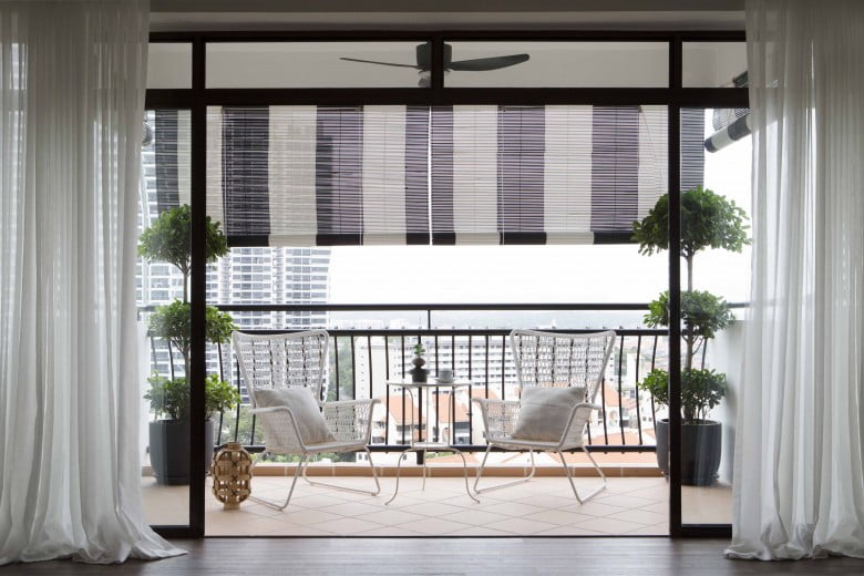 Take in the view of scenic downtown Singapore from this smart, classic-meets-modern interior. The open floor plan allows abundant natural light to fill the clean, white space, which together with the black-finish, metallic fixtures provide a sense of modernity.